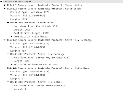 Step 3) Server send message to the client contains Certificates, Server encryption Key, and lastly Server Hello Done.
