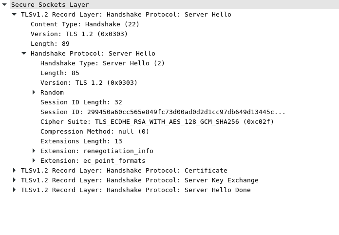 Step 3) Server send message to the client contains Certificates, Server encryption Key, and lastly Server Hello Done.