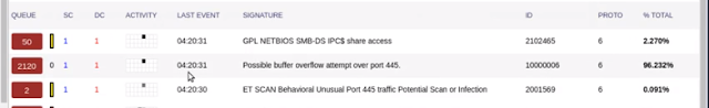 alert tcp $EXTERNAL_NET any -> $HOME_NET 445 (msg:”Possible buffer overflow attempt over port 445.”; content:”|4141…14141|”;sid:10000006; rev:1;)