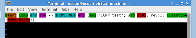 alert icmp any any -> $HOME_NET any (msg:”ICMP test”; sid:1001; rev:1; classtype:icmp-event;)